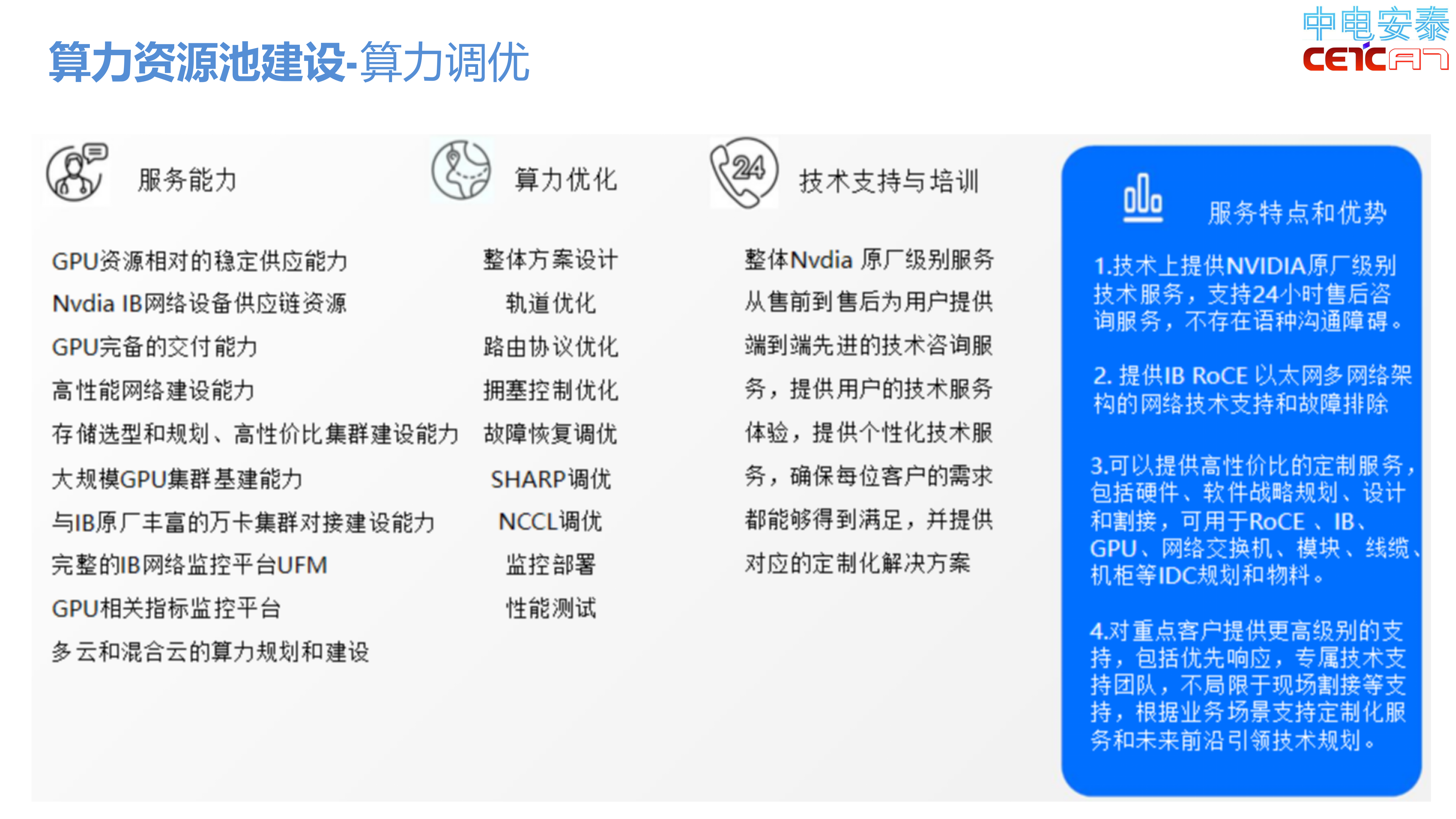 智算资源池建设、算力组网调优和运维服务